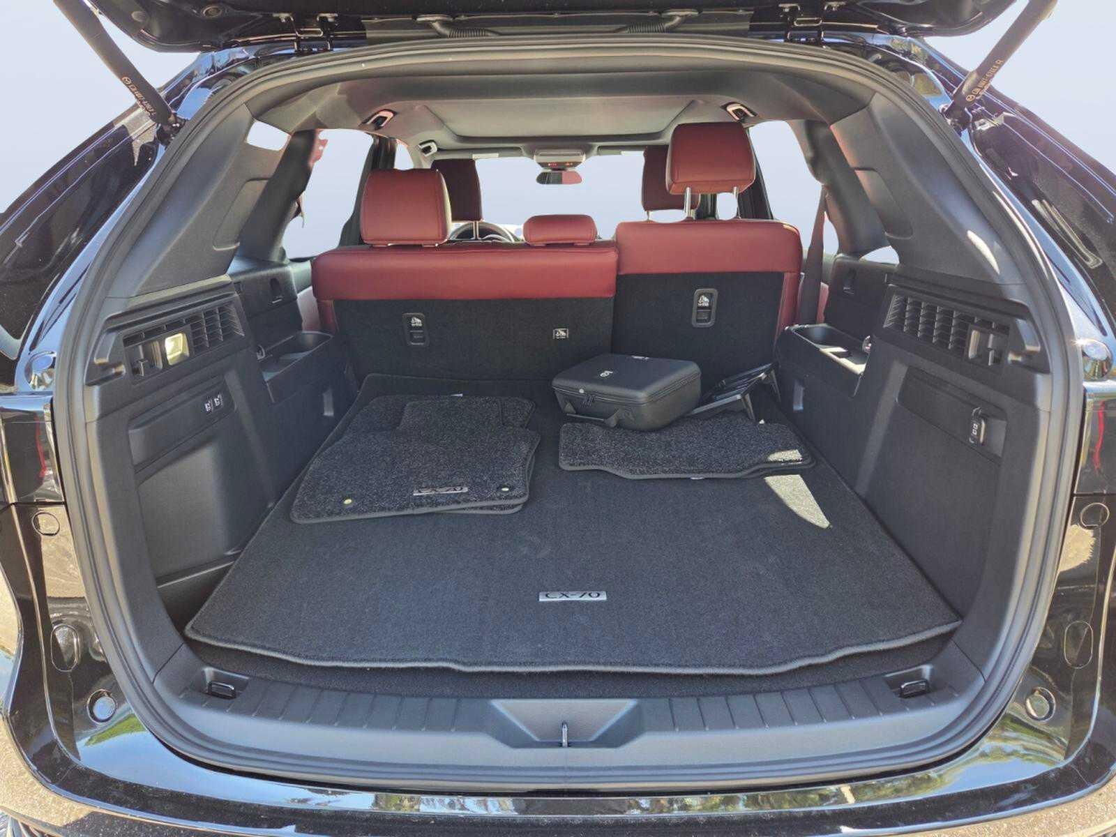 Leather Seats, Navigation, Sunroof, Panoramic Roof, All Wheel Drive. Mazda CX-70 3.3 Turbo S Premium with Jet Black Mica exterior and Red interior features a Straight 6 Cylinder Engine with 340 HP at 5000 RPM*.