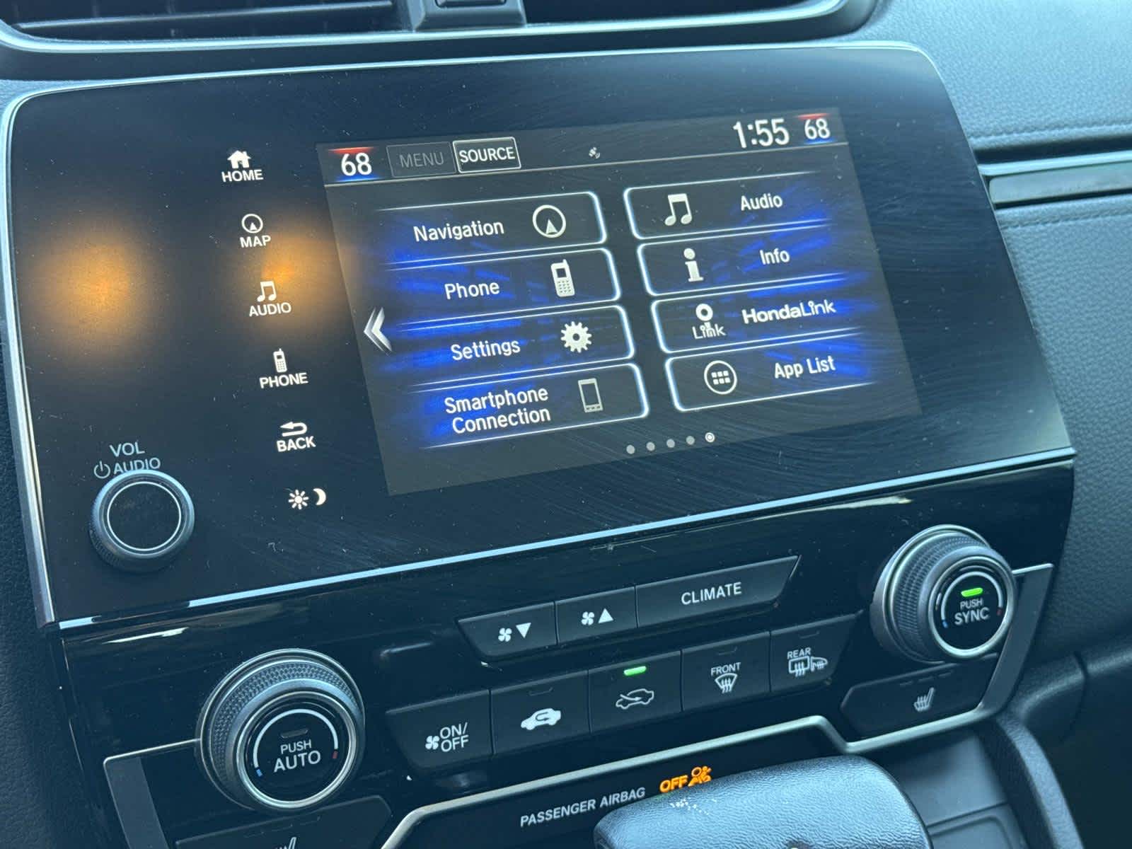 - Radio: AM/FM/HD/SiriusXM Audio System -inc: 180-Watts, 8 speakers, 7" display w/high-resolution WVGA (800x480) electrostatic touch-screen, customizable feature settings, Bluetooth® streaming audio and HandsFreeLink, Pandora compatibility, Radio Data System (RDS), Speed-Sensitive Volume Control (SVC), USB/display audio interfaces w/1.5-Amp charging port in center console, 12-volt power outlets (Front and center console), HondaLink, Apple CarPlay/Android Auto, SMS text message function and 2.5-Amp charging ports in 2nd-row