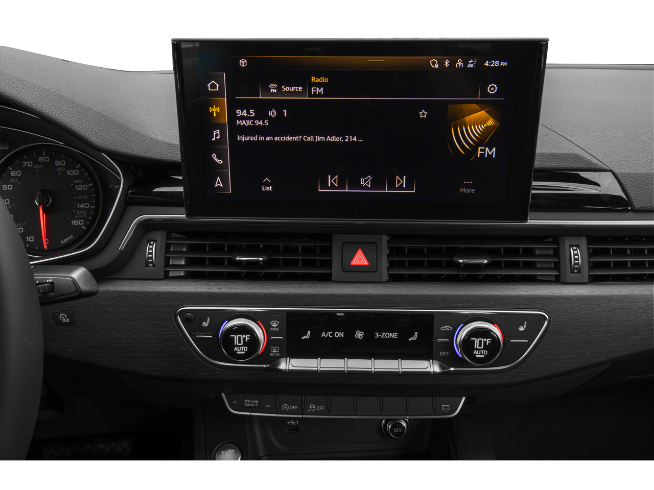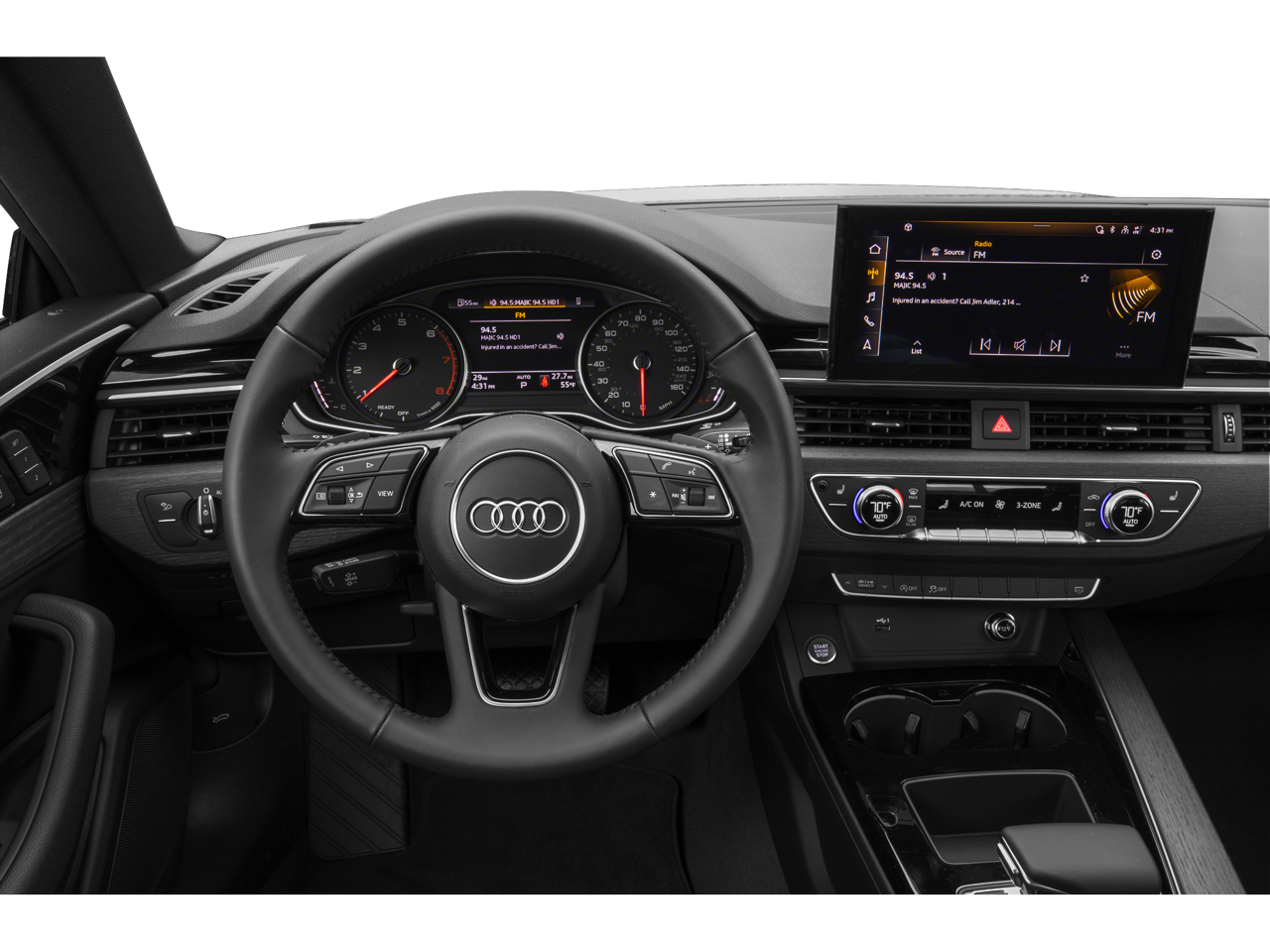 - Radio: Audi Sound System -inc: MMI touch display w/10.1" center screen, Bluetooth® preparation for mobile phone, USB Audi music interface w/Audi smartphone interface (Android Auto and Apple CarPlay), 10 speakers, 6-channel amplifier, 180 watts and HD Radio technology