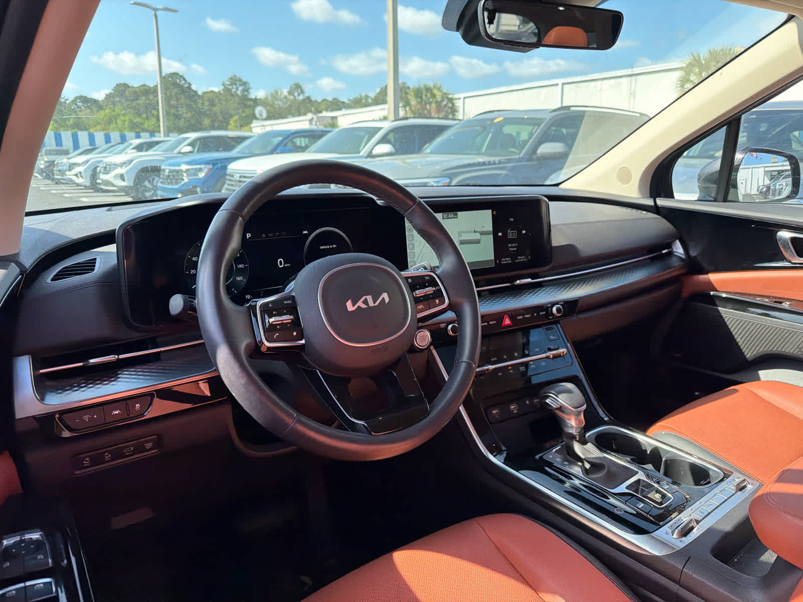Leather Seats, Third Row Seat, Navigation, Power Liftgate, Rear Air Kia SX Prestige with Panthera Metal exterior and Tuscan Umber interior features a V6 Cylinder Engine with 290 HP at 6400 RPM*.